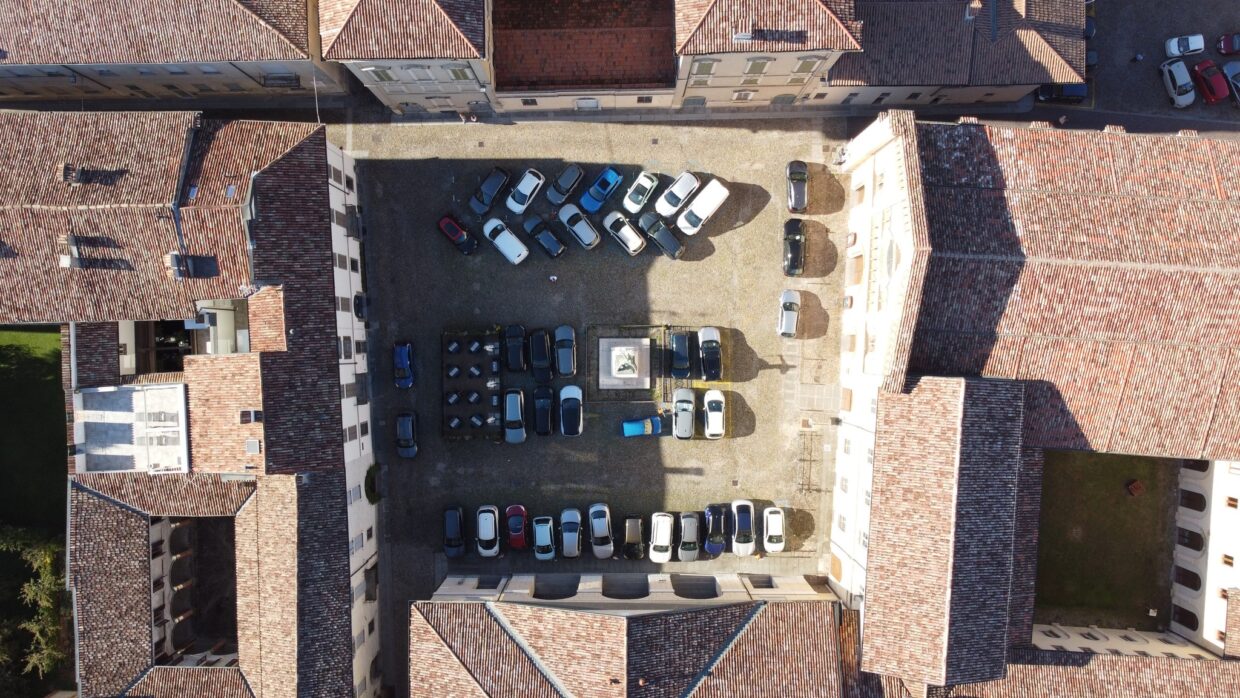 Sul lato orientale della piazza domina la facciata in stile gotico-lombardo dell’ex chiesa di S. Domenico (1471), oggi sede dell’omonimo teatro, con decorazioni in cotto in parte originali e l’annesso convento. Sul lato meridionale corre l'edificio porticato dell'ex Mercato coperto, costruito nel 1842 su disegno del lodigiano Baldassarre Corbetta. Sulla sinistra la chiesa di S. Spirito e S. Maddalena, anch’essa sconsacrata, è un'elegante opera rinascimentale attribuita ad Agostino Fondulo. Un salotto nel centro della bellissima città di Crema, trattato come un autosilo interrato. Chi di voi occuperebbe il più bel salotto della sua casa per parcheggiare automobili.
